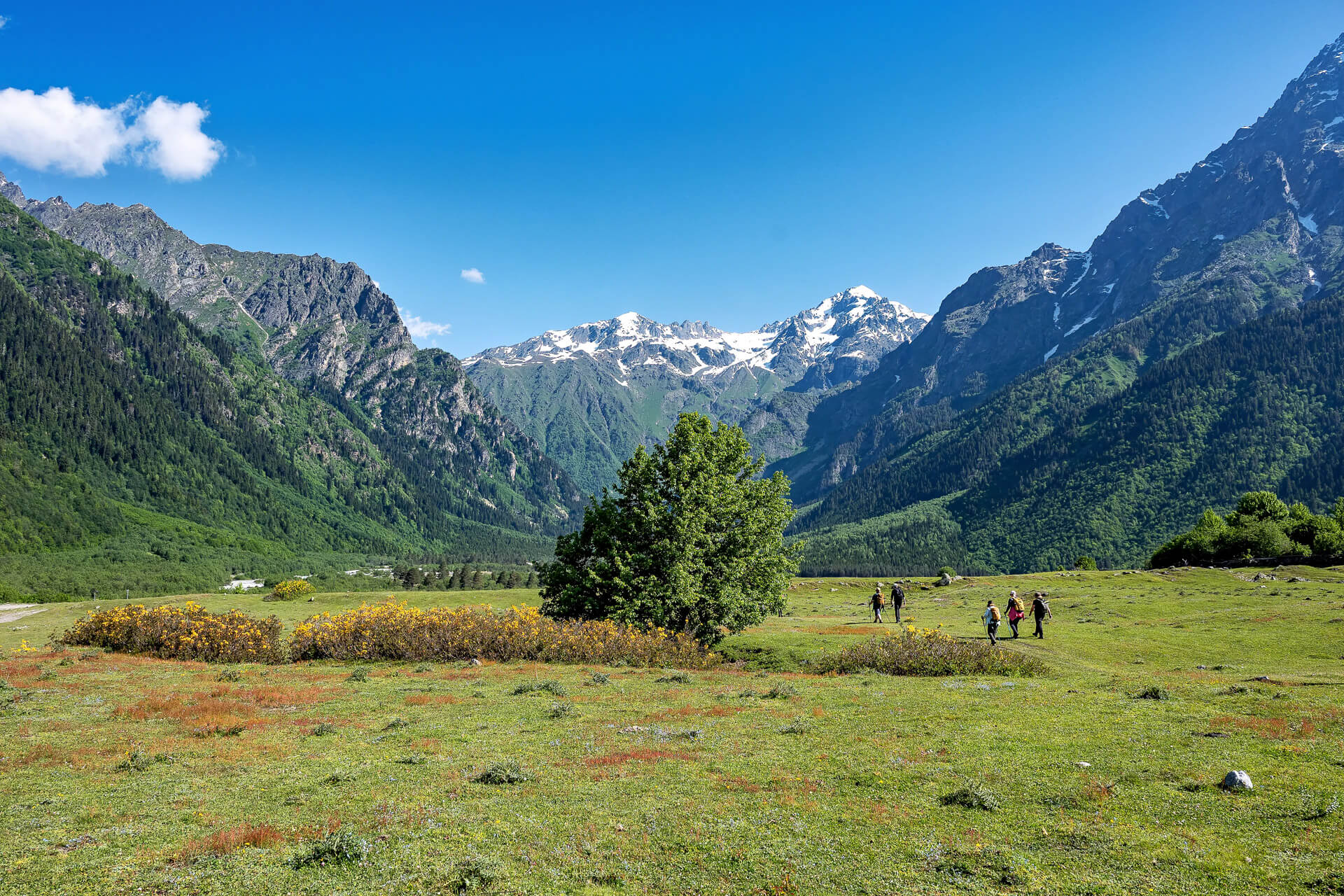 - Uschba (Südgipfel 4737 m hoch, Nordgipfel 4698 m), Großer Kaukasus